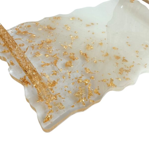 Χειροποίητος λευκός δίσκος με φύλλα χρυσού στα χερούλια, φύλλα χρυσού & λευκό χρώμα . Ιδανικός για γάμο, κουμπάρους ή ρομαντική διακόσμηση.