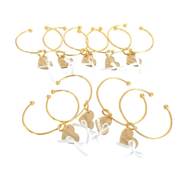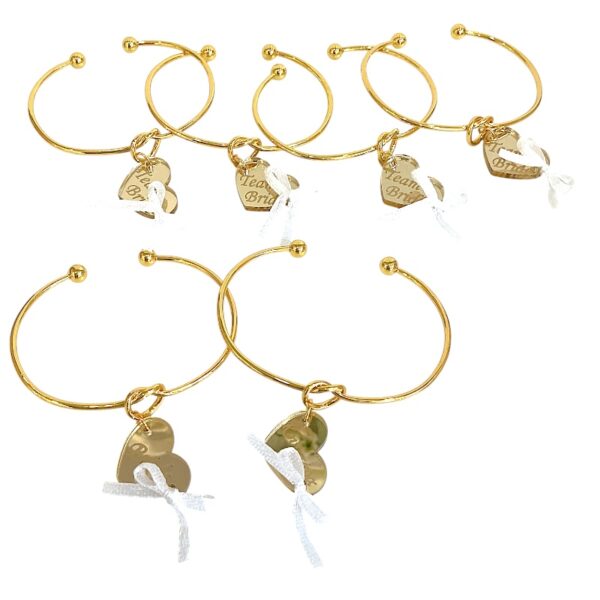 Χειροποίητο βραχιόλι με μεταλλική χρυσή βάση και καρδιά από καθρέφτη plexiglass με χαραγμένο το “Bride”. Με λευκό φιογκάκι για extra κομψότητα.